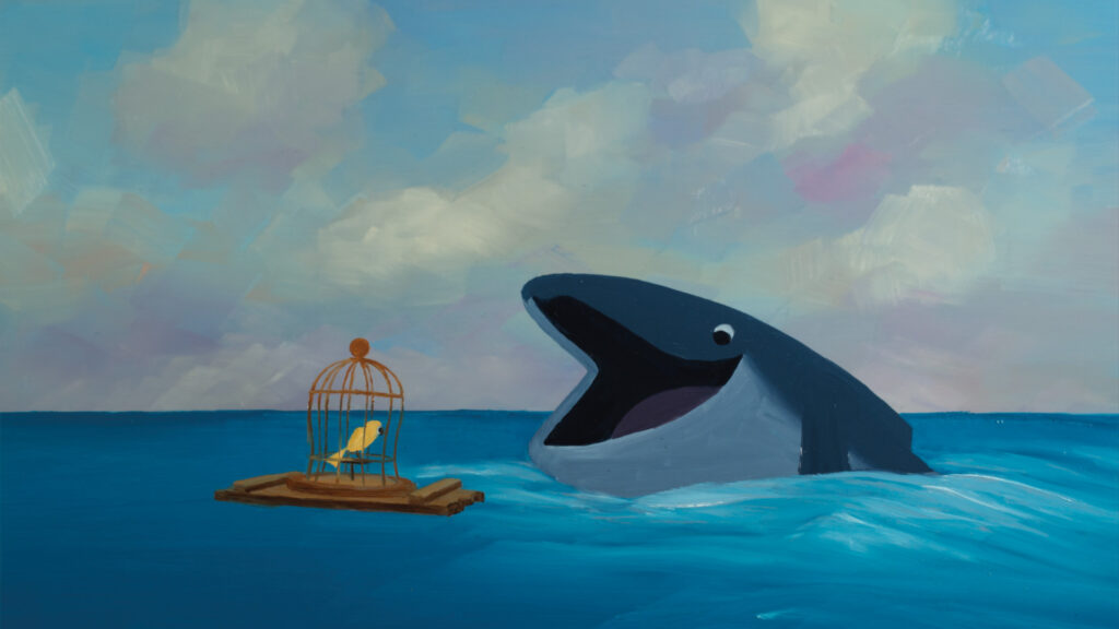 | The Bird & the Whale | Carol Freeman | Ireland | 7.04 | A young whale strays too far from his family to explore a shipwreck and discovers its sole survivor, a caged songbird. Together they struggle to survive lost at sea. |